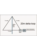 FULL WAVE DELTA LOOP. Configured as a delta loop or equilateral triangle, if laid flat will be good for near DX. If vertical, or near vertical will provide low angle radiation which is good for long range DX in the direction of the loop (looking straight on at the front) and near DX off the sides. Gain 3.2dBd over a dipole antenna.